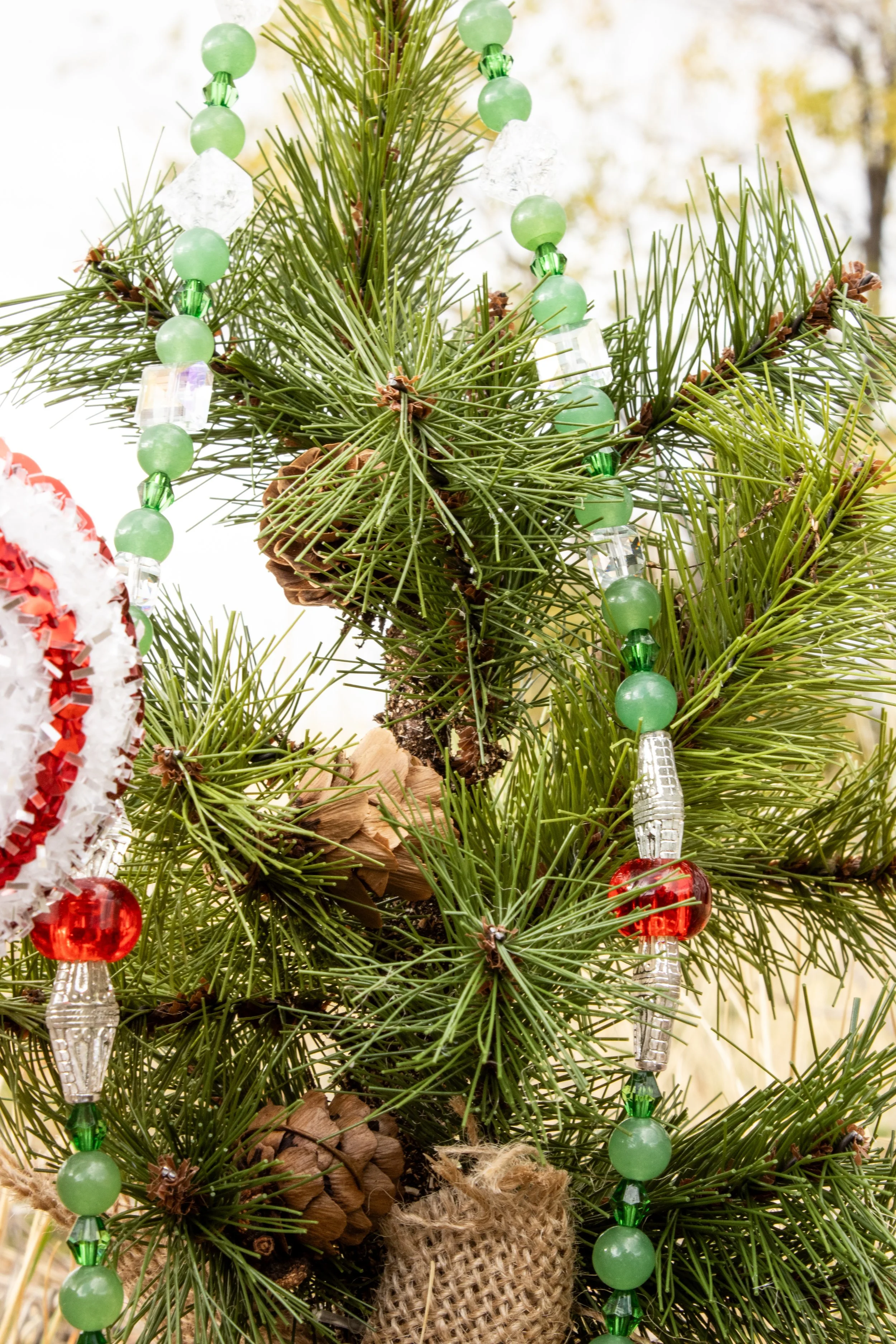 Illuminate your holiday season with the timeless elegance of my hand made necklace. This necklace blends rich round and faceted green glass beads, white glass beads that resemble crystals and luminous red glass beads that resemble hard candy and my hand carved feather pendant to complete the look!